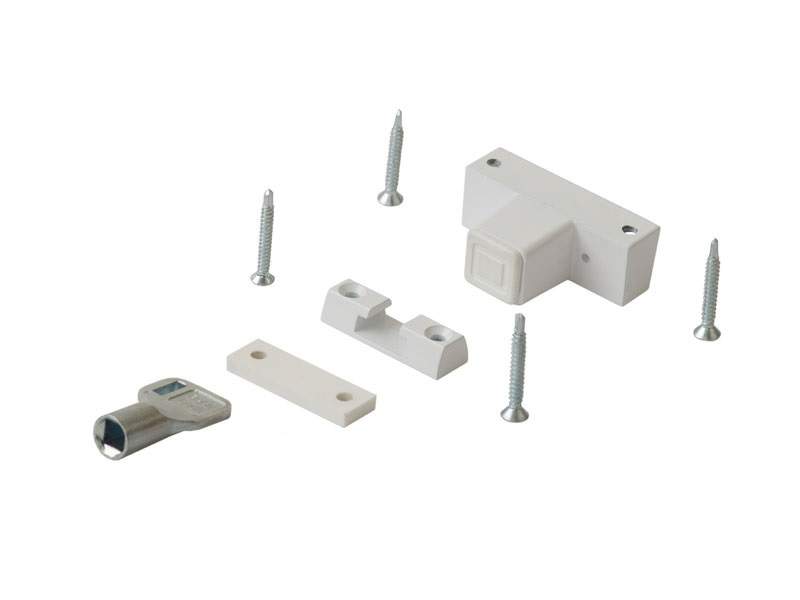 Детский замок (блокиратор) с цилиндром и ключом Elementis блокирует полное открывание окна, оставляя возможность установить створку в режиме проветривания.
