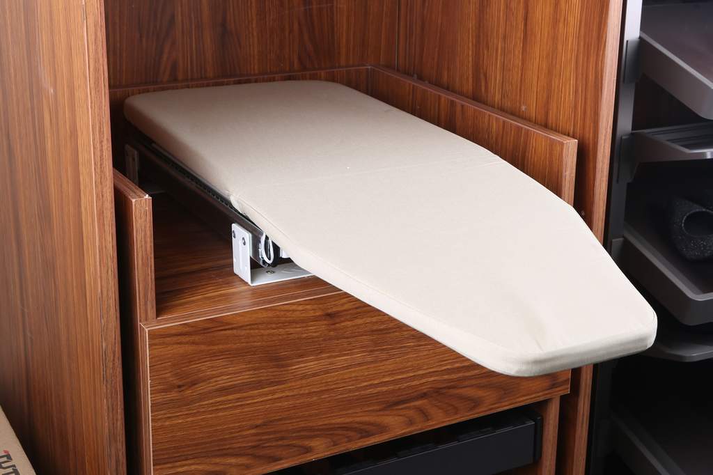 - Компактное размещение гладильной доски в шкафу (складывается в ячейку)