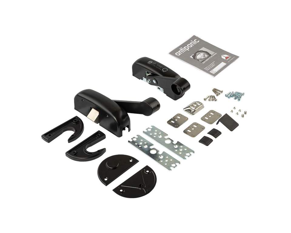 Гарнитур нажимной с декоративными накладками для антипаниковой ручки (комплект деталей для установки), 3 точки запирания горизонтальная и вертикальные, черн. RAL9005, 403/T