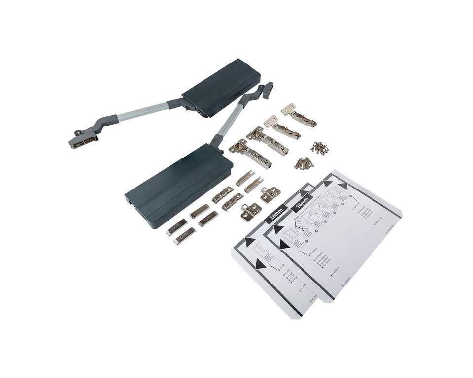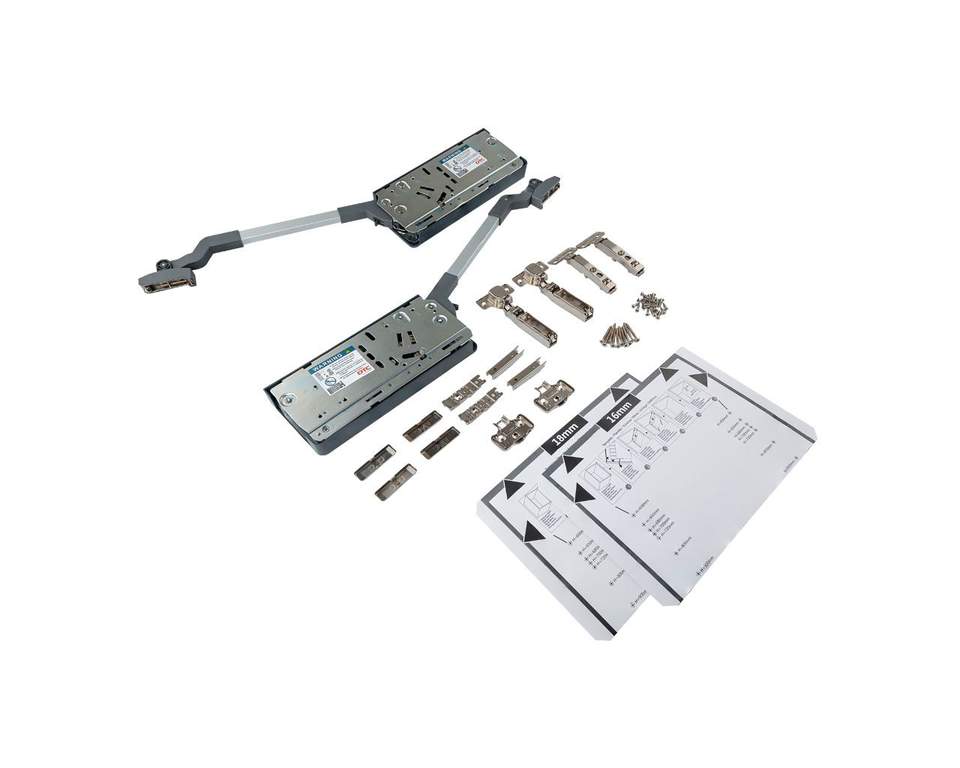Легкость открывания и фиксация фасада в любом положении. Бесшумное и плавное закрывание. Обеспечивает хороший доступ к содержимому. 3D регулировка. Простой монтаж – быстрая регулировка. Снятие фасада без инструмента. Комплект в одной коробке. Ограничитель высоты открывания. Долгий срок службы (60 000 циклов открывания).