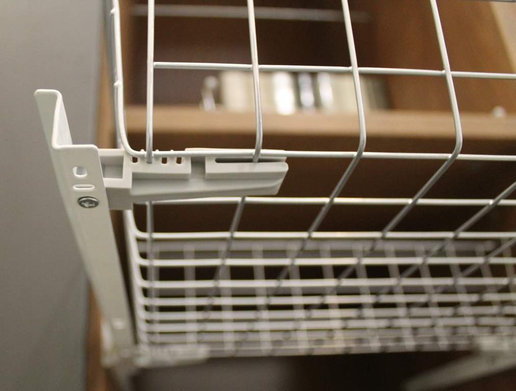 Корзина устанавливается на роликовые или на шариковые направляющие при помощи пластиковых прищепок (4 шт. на одну корзину).
