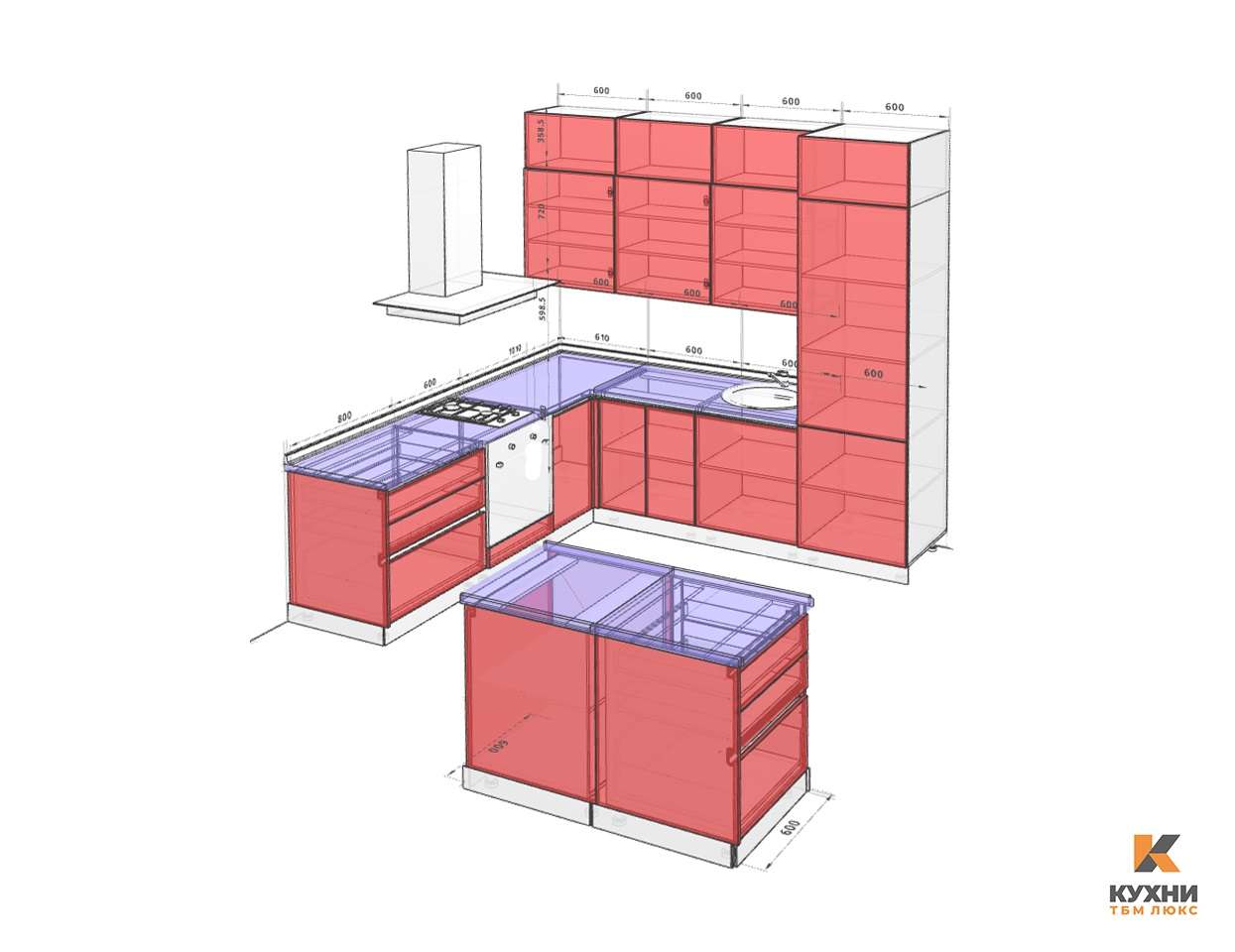 Итоговая стоимость зависит от выбранных элементов и размеров кухни. Требуется консультация специалиста.