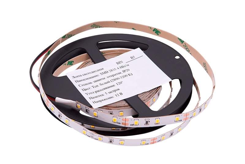 Лента светодиодная 2835/60, 12V, 5м, теплый белый 3200К, IP20, 4.8W/м
