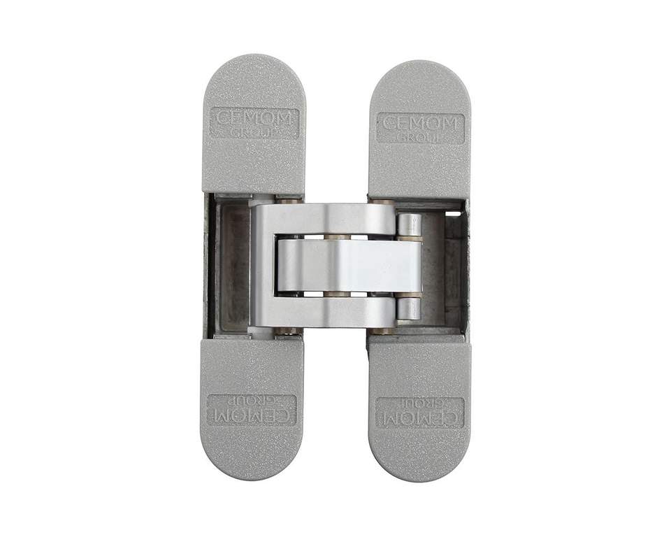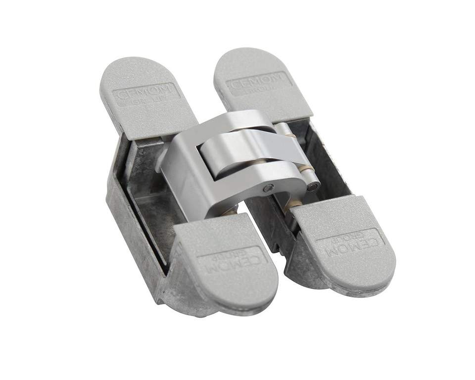 Петля дверная скрытая CEMOM универсальная, 3D, 95×23 мм, 60 кг, цама, хром мат., с 4 пласт. колпачками
