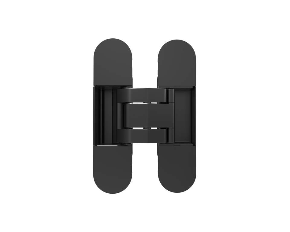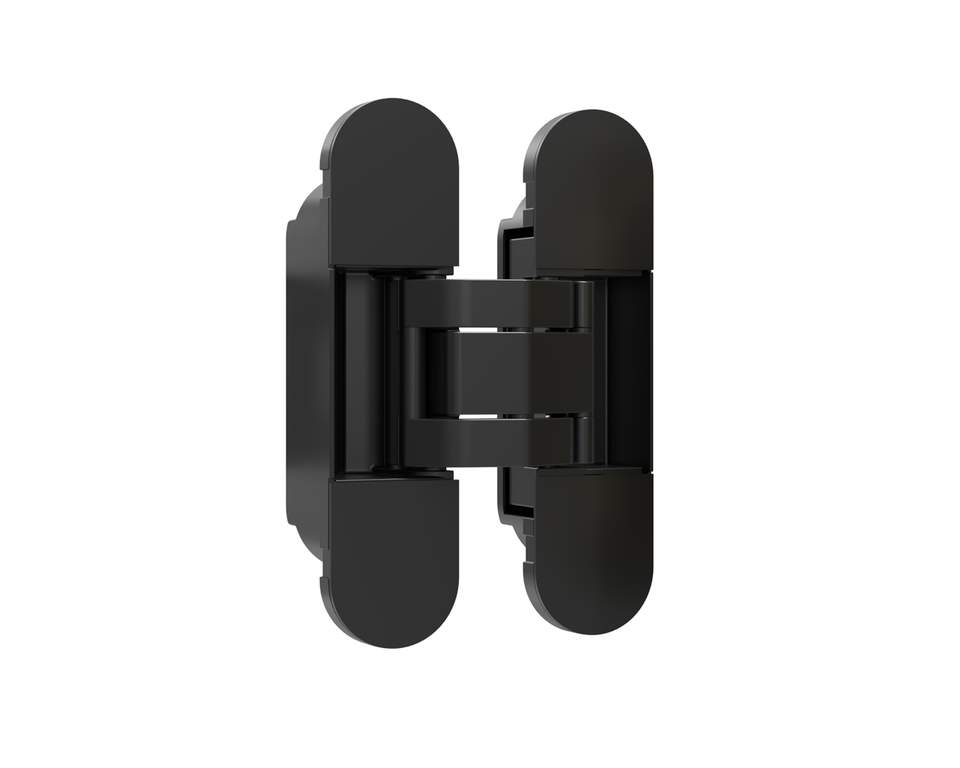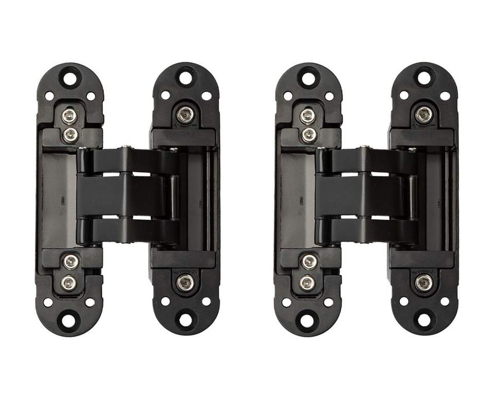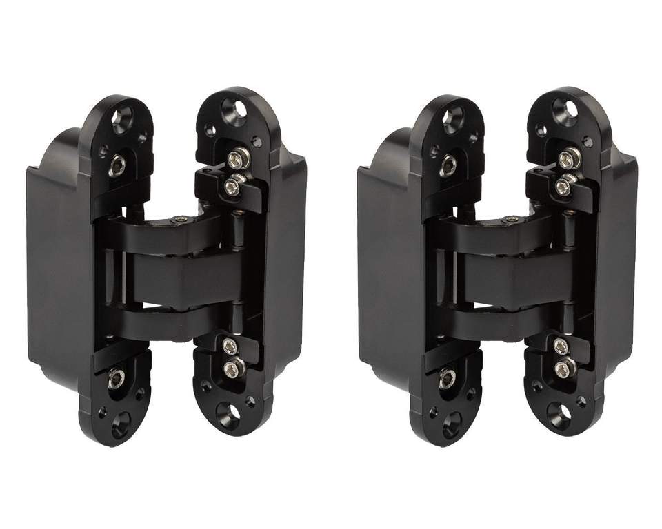 Петля скрытая ELEMENTIS, универсальная, 3D, 120×30 мм, 50 кг, цамак, черная матовая, в комплекте 2 петли,8 пласт. колпачков,8 винтов,2 рег.ключа,1 инструкция