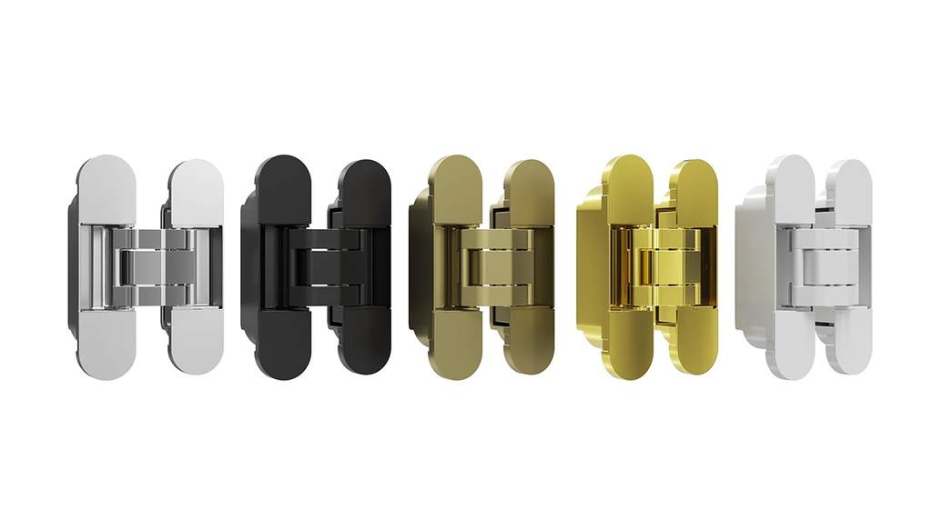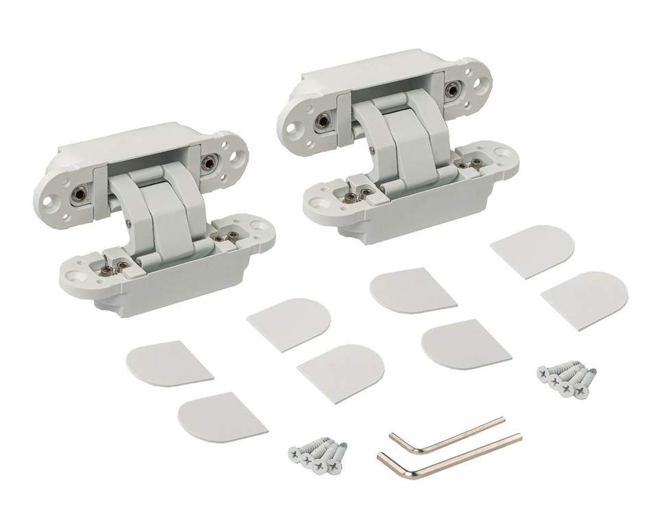 - Петля скрытая ELEMENTIS, универсальная, 3D, 120×30 мм, 50 кг, цамак, белая матовая, в комплекте 2 петли,8 пласт. колпачков,8 винтов,2 рег.ключа,1 инструкция