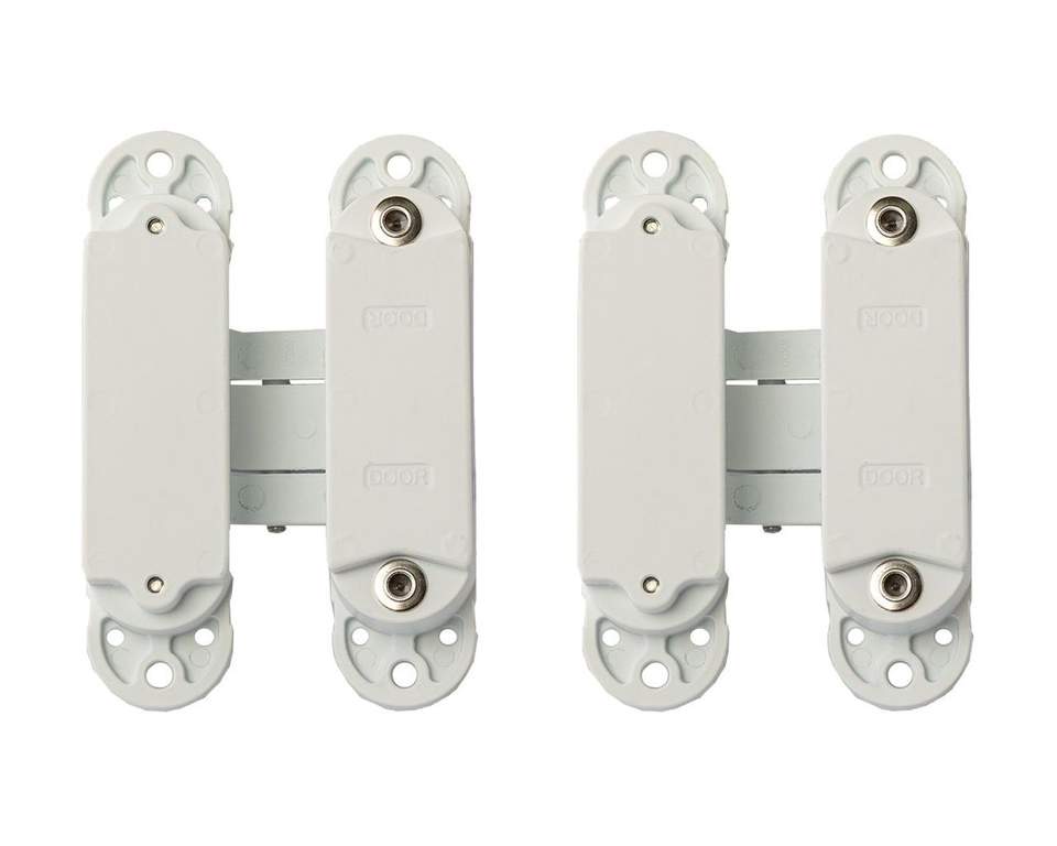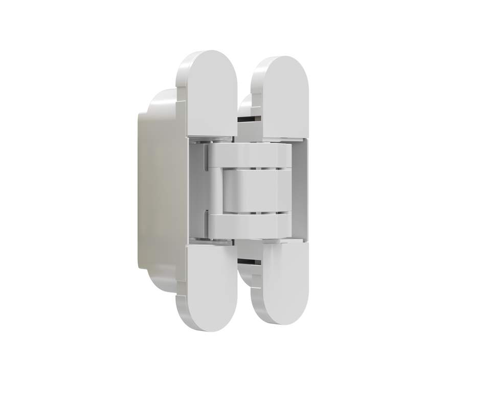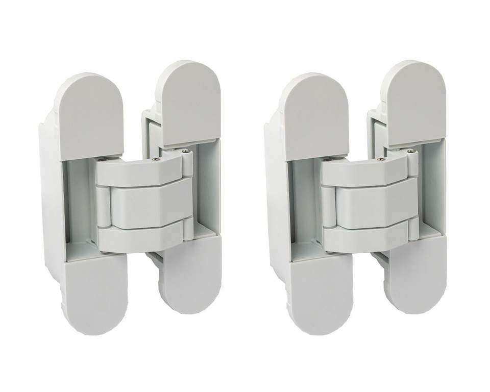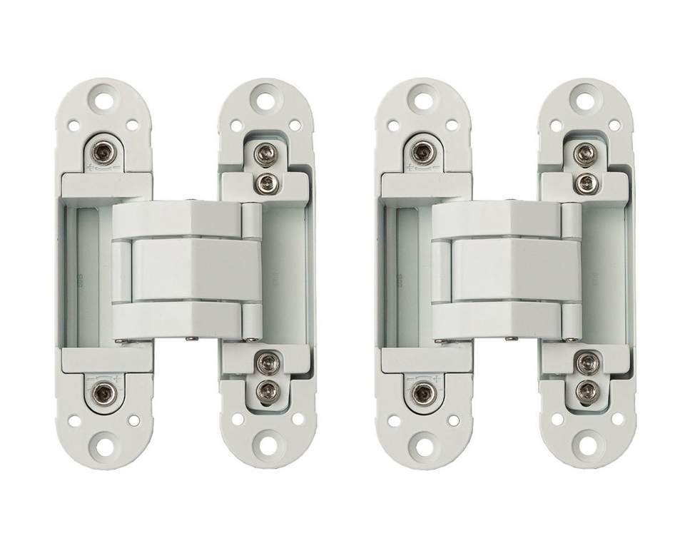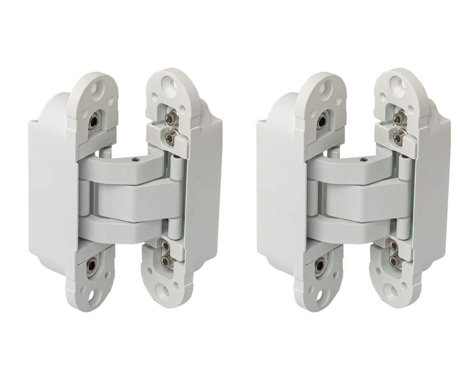 Петля скрытая ELEMENTIS, универсальная, 3D, 120×30 мм, 50 кг, цамак, белая матовая, в комплекте 2 петли,8 пласт. колпачков,8 винтов,2 рег.ключа,1 инструкция