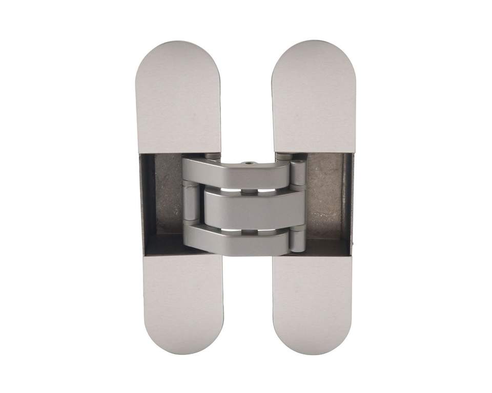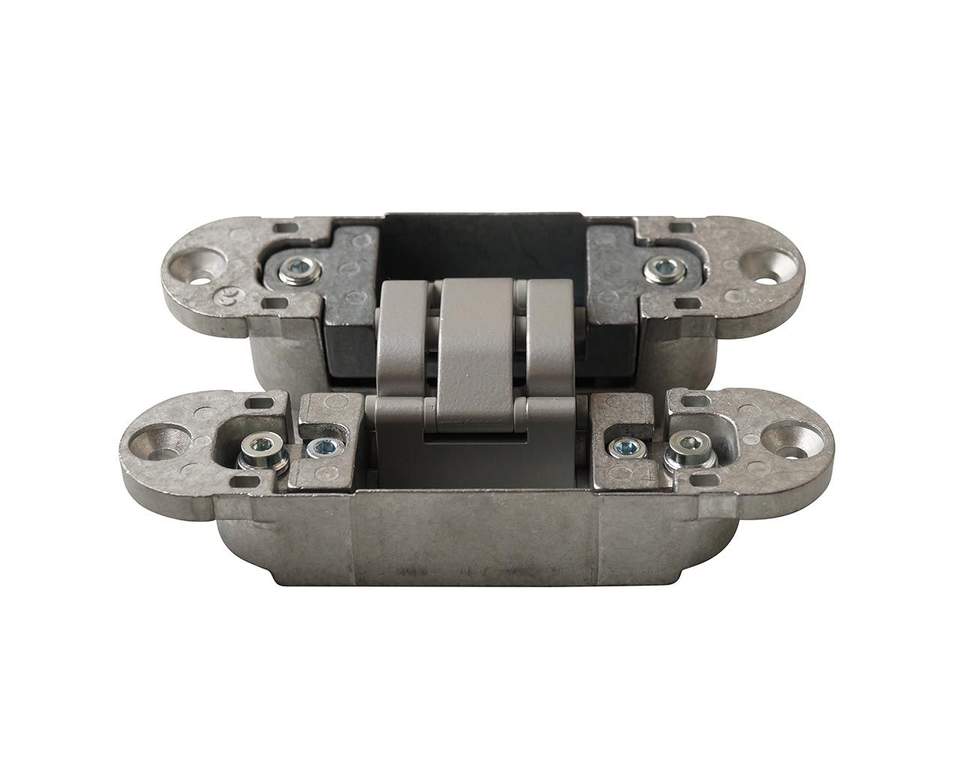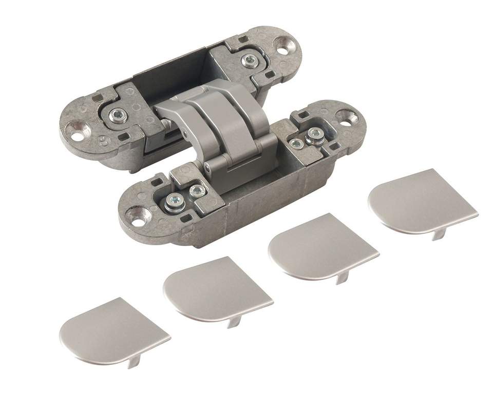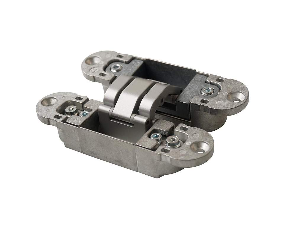 Петля скрытая OTLAV, 3D, универсальная, с 4 накладками, 120×30 мм, 60 кг, корпус без покрытия шарнирная часть серебро матовое