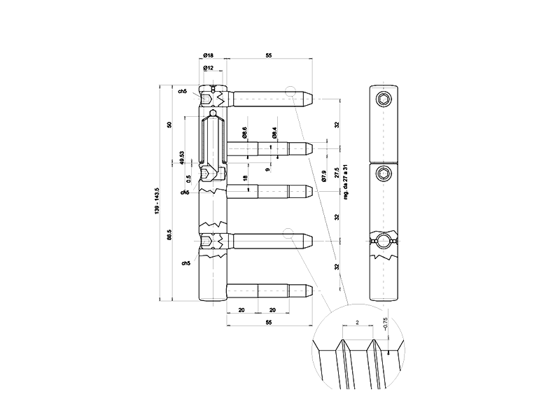 5-штыревая петля из линейки Ursus производителя Otlav, предназначена для тяжелых деревянных дверей до 160 кг. Шарнир создан в сочетании совершенства трехмерной настройки, которая обеспечивает значительную экономию времени и денег, поскольку для установки петли требуется только один человек. Возможны регулировки по вертикали, горизонтали и глубине. Петля спроектирована с точностью и с использованием только лучших материалов, прошедших жесткие испытания.
