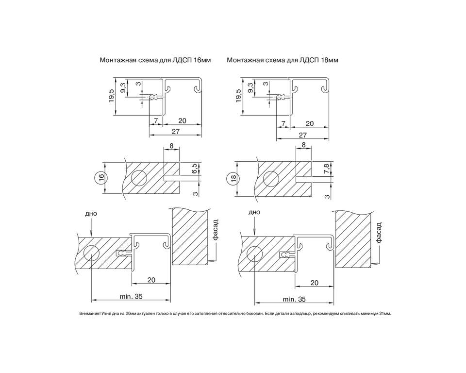 - Профиль врезной GOLA FIRMAX для верхних баз с пазом для светодиодной ленты, для ДСП-16/18мм, L=3000мм, серебро анод, алюминий