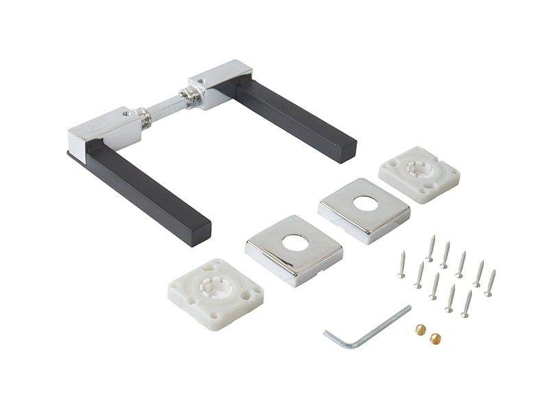 Данная дверная ручка с квадратной раздельной накладкой изготовлена из цамака – сплава, состоящего из 4 металлов: цинк, алюминий, магний и медь. Детали, выполненные из этого материала, отличаются своей высокой прочностью. В комплекте идут: две съемные накладки, крепление и штифт. Ручка будет уместно смотреться в интерьере, оформленном в стиле high-tech.