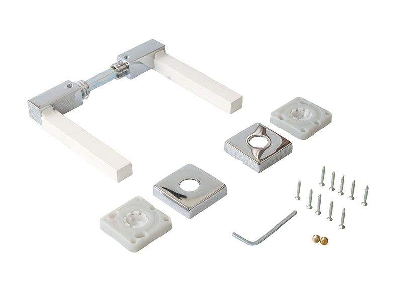 Данная дверная ручка с квадратной раздельной накладкой изготовлена из цамака – сплава, состоящего из 4 металлов: цинк, алюминий, магний и медь. Детали, выполненные из этого материала, отличаются своей высокой прочностью. В комплекте идут: две съемные накладки, крепление и штифт. Ручка будет уместно смотреться в интерьере, оформленном в стиле high-tech.