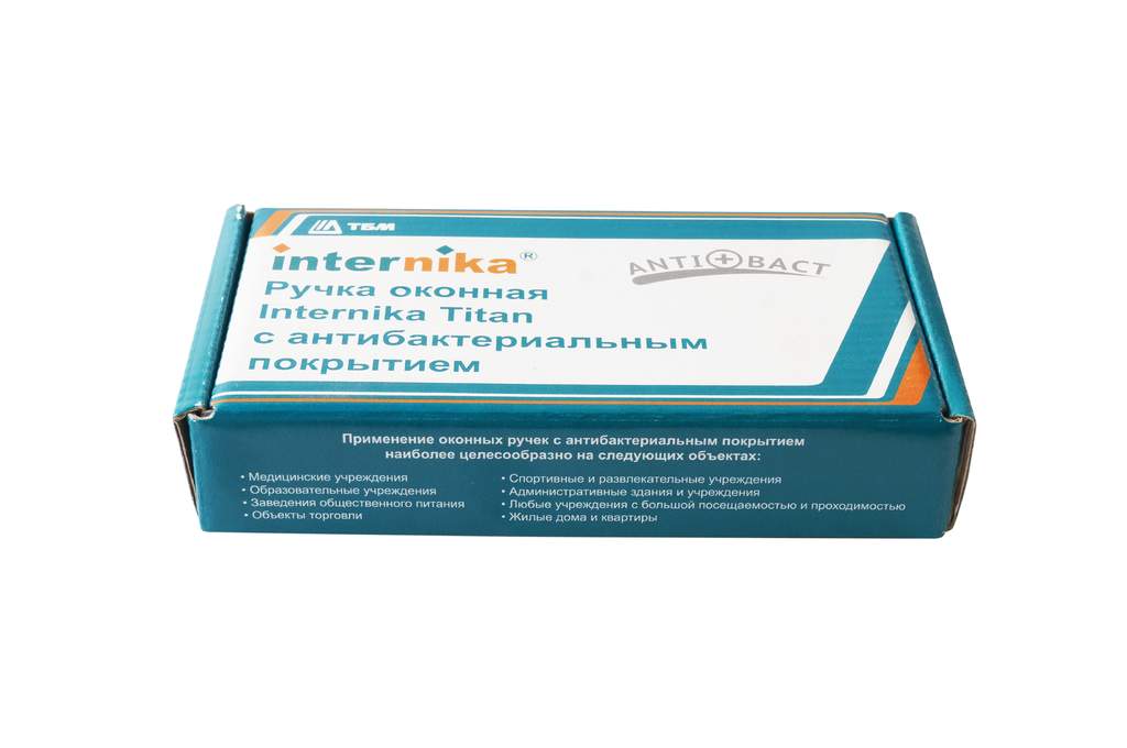 Оконная ручка Internika Titan BioCote имеет антибактериальное покрытие производства Akzonobel, которое содержит в себе ионы серебра. Специфика этого антибактериального покрытия заключается в предотвращении размножения и уничтожении бактерий и микробов, попадающих на поверхность. Его качество и эффективность подтверждены международным сертификатом Akzonobel и признаны потребителями во всем мире. Кроме того, антибактериальное покрытие с технологией BioCote является экологически безопасным, оно было протестировано на антимикробное действие в соответствии с ISO 22196:2011.