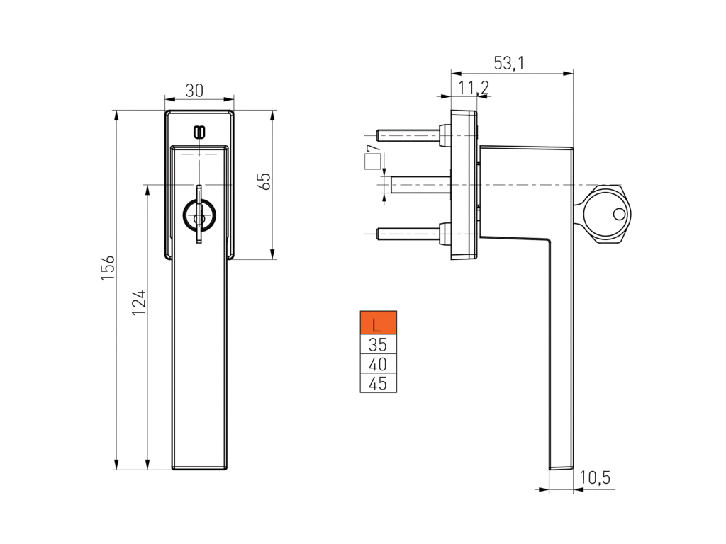 Ручка оконная с ключом Internika DUBLIN 35 мм, алюминиевая, 2 винта, черный матовый RAL9005M (45°)