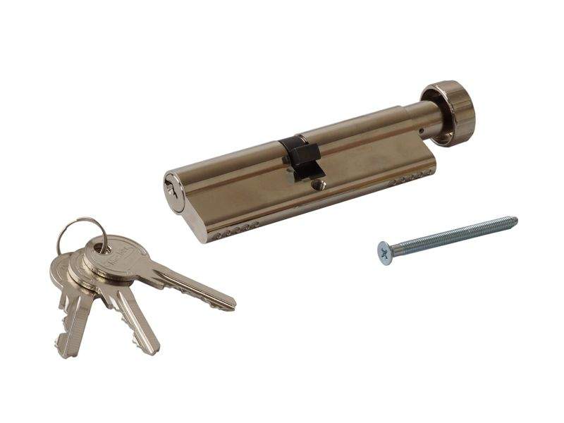Цилиндр профильный MAXBAR с круглой ручкой 50 (ручка C)/50 (ключ), никелированный. MAX5100