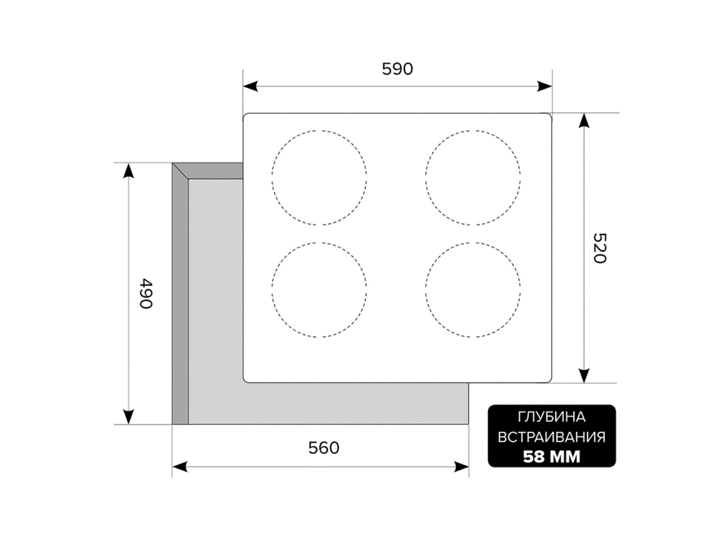 | Размер для встраивания (ШхГ) | 560 х 490 мм |