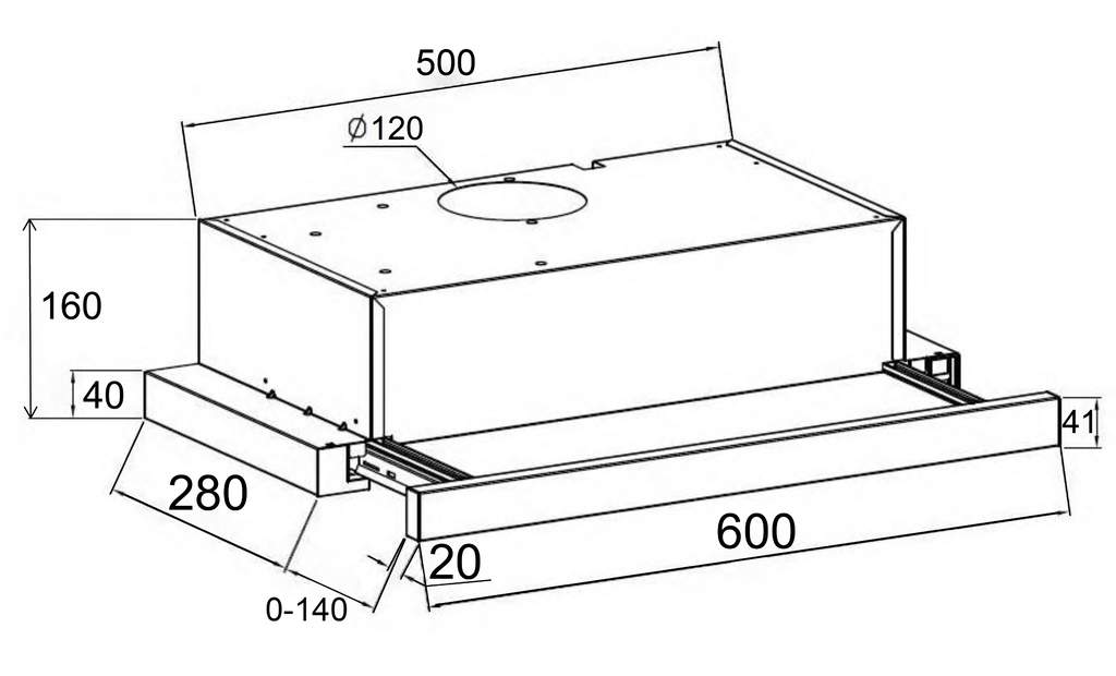 Вытяжка встраиваемая HUBBLE 600 INOX, ширина 600 мм, нержавейка